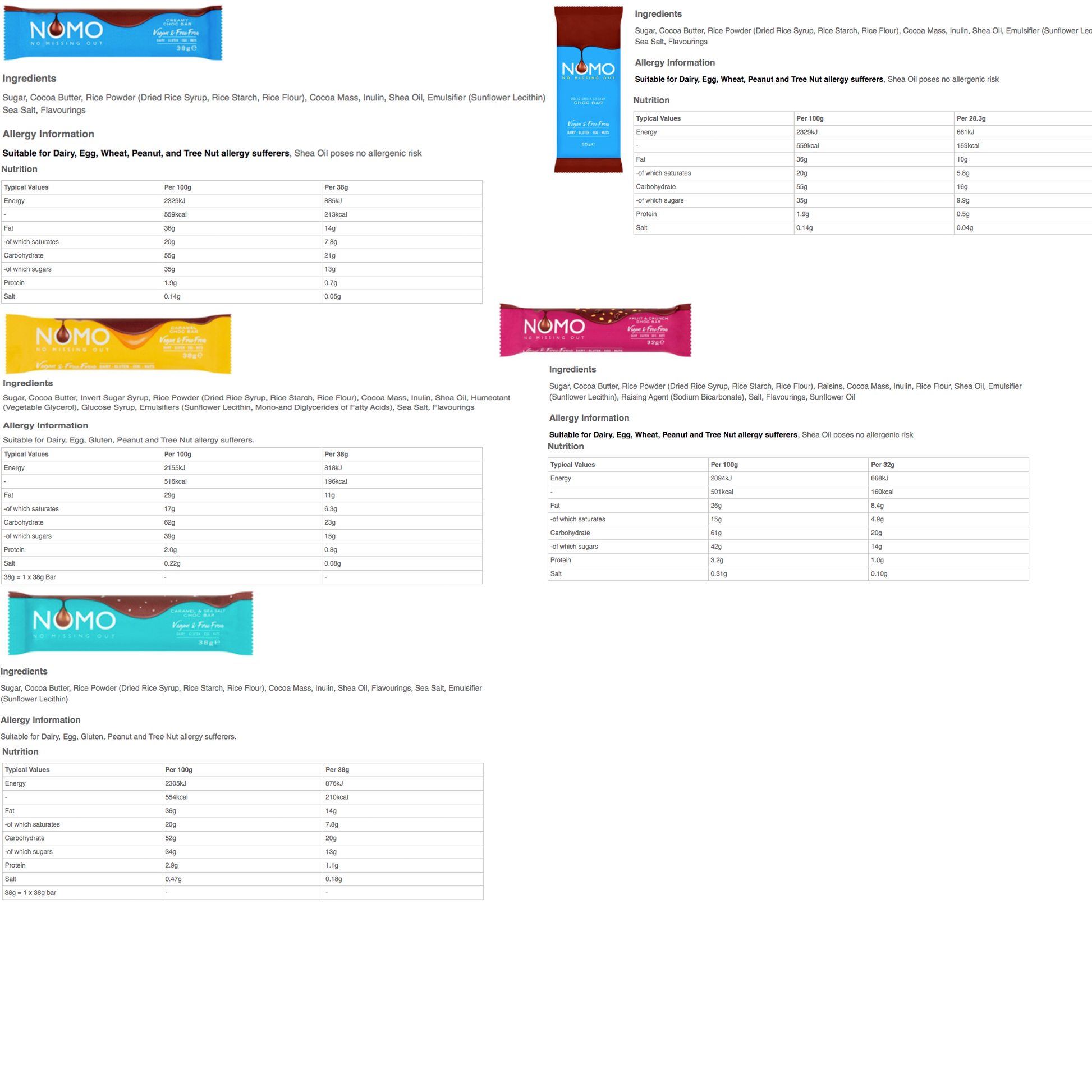 - Nomo Creamy Choc Bar 38g x 1